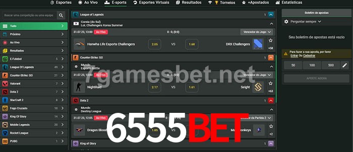 O 6555Bet oferece uma grande seleção de opções de apostas em e-sports com probabilidades competitivas